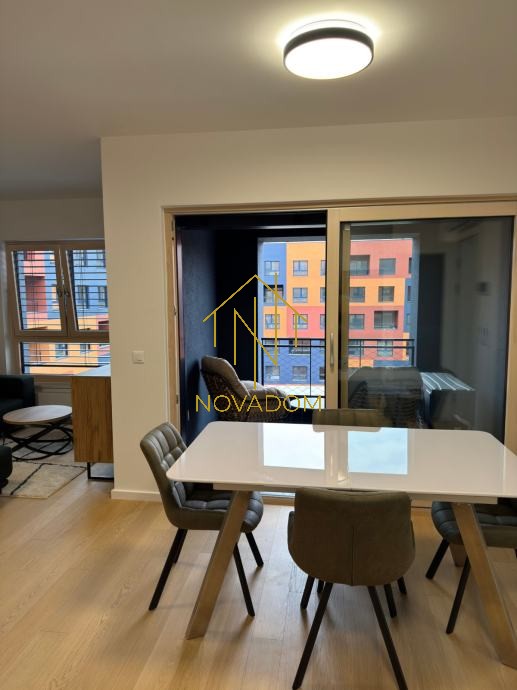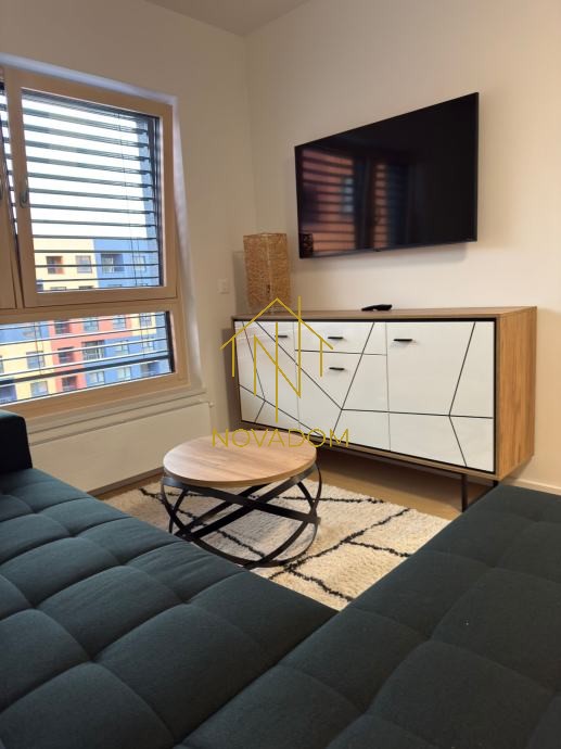 Iznajmljuje se moderan i kompletno kvalitetno namješten 3s stan južne orijentacije na V katu od 70m2 na odličnoj lokaciji u novogradnji (blizina Laube, Algebre…).
