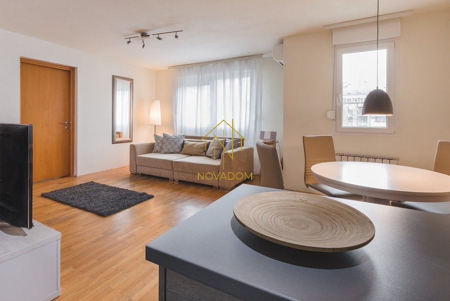 Iznajmljuje se moderan te kompletno namješten i opremljen 2s stan od 52m2 na IV katu u kvalitetnoj novijoj gradnji (2008.g.) Stan se sastoji od: ulaznog prostora, open space dnevnog boravka s blagovaonom i kompletno opremljenom kuhinjom, prostrane spavaće sobe (krevet 160×200) s ormarom, kupaone s wc-om i zasebnog wc-a. Stanu pripada i vanjsko parkirno mjesto pod rampom u dvorištu zgrade.
