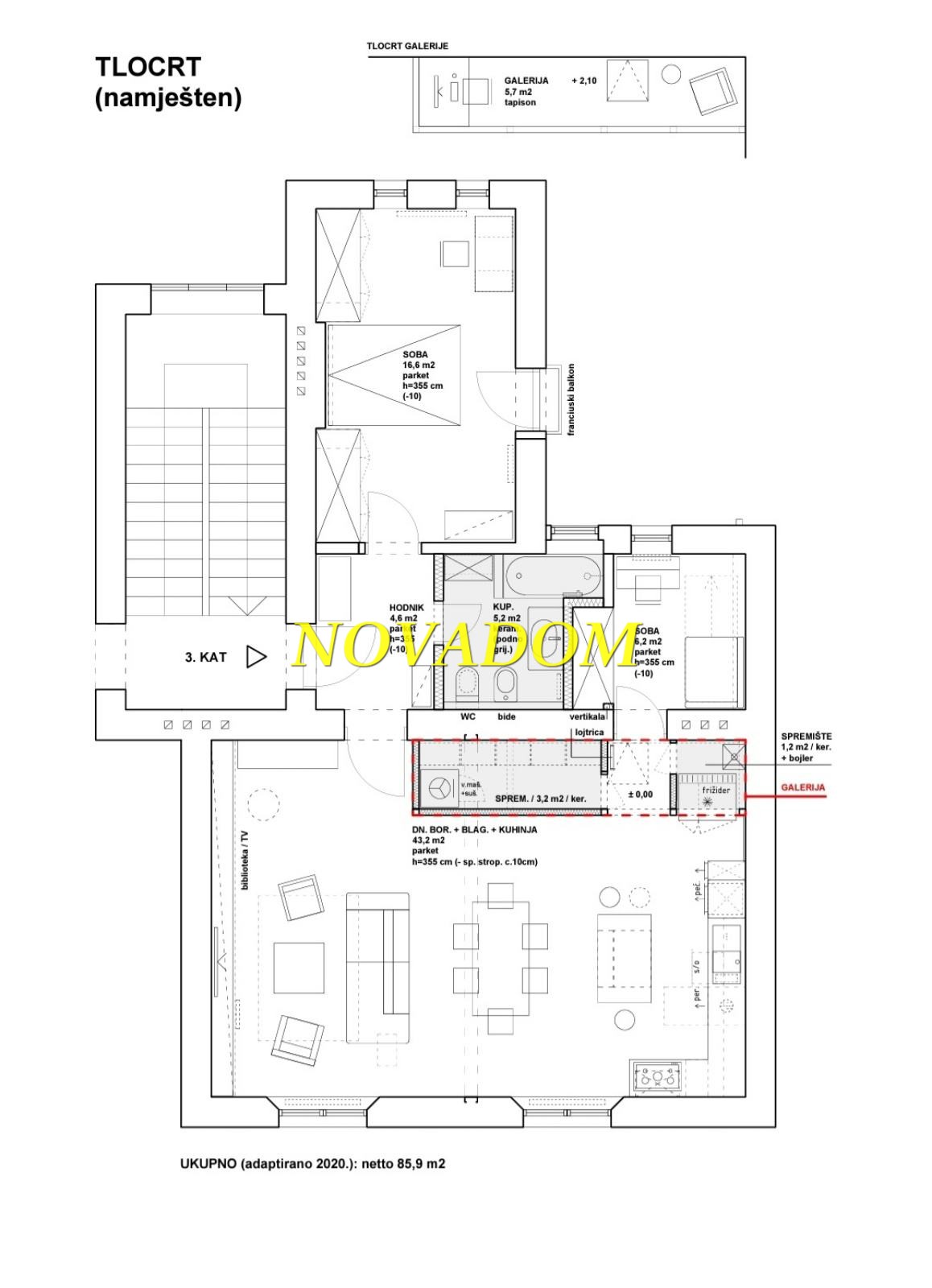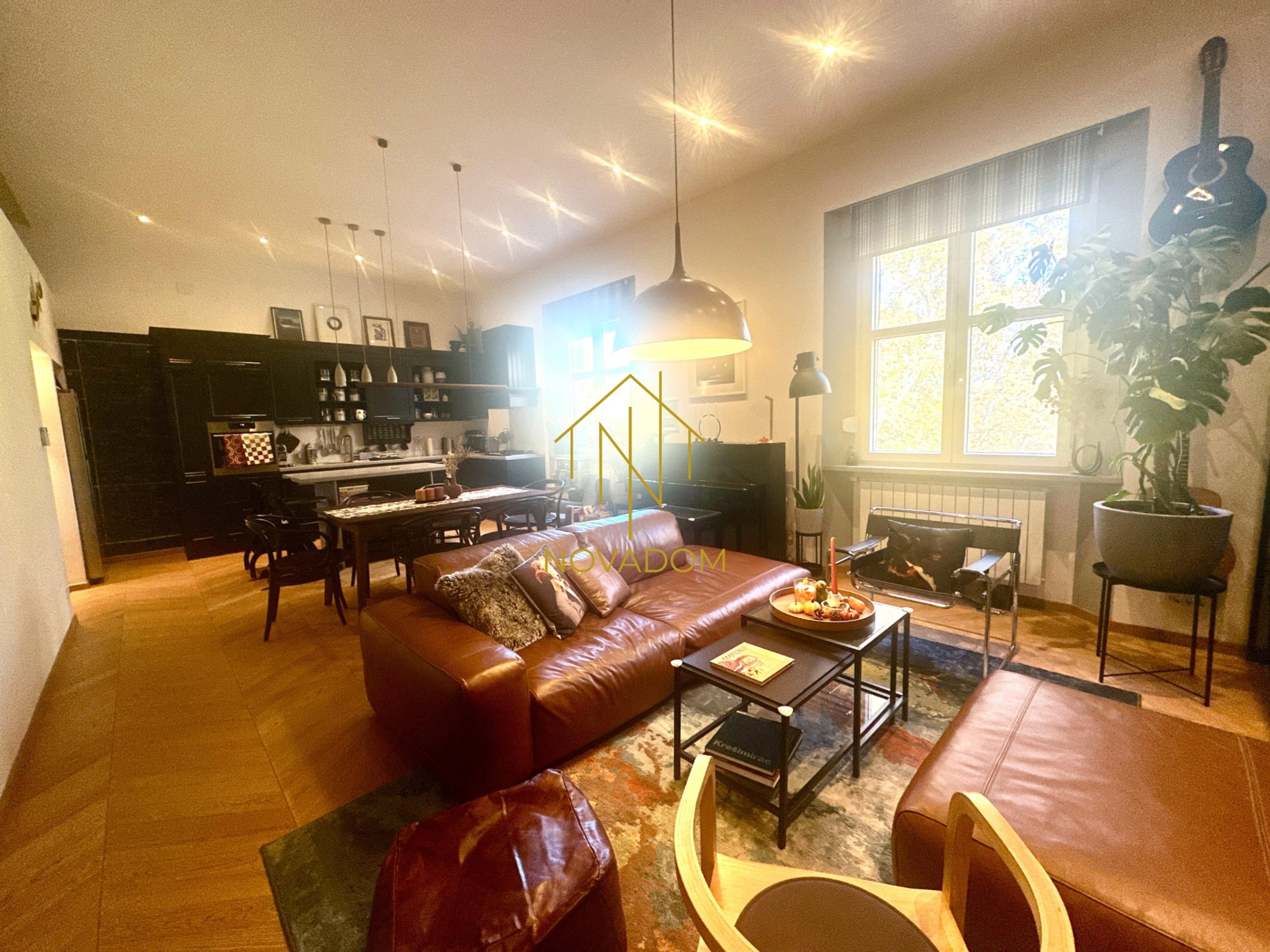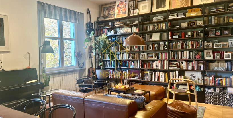 Prodaje se luksuzan te moderno opremljen i dizajnerski namješten 3s stan (visina stropa 3,60m2) od 78m2 na III katu kvalitetne stambene zgrade starije gradnje(bez lifta).
