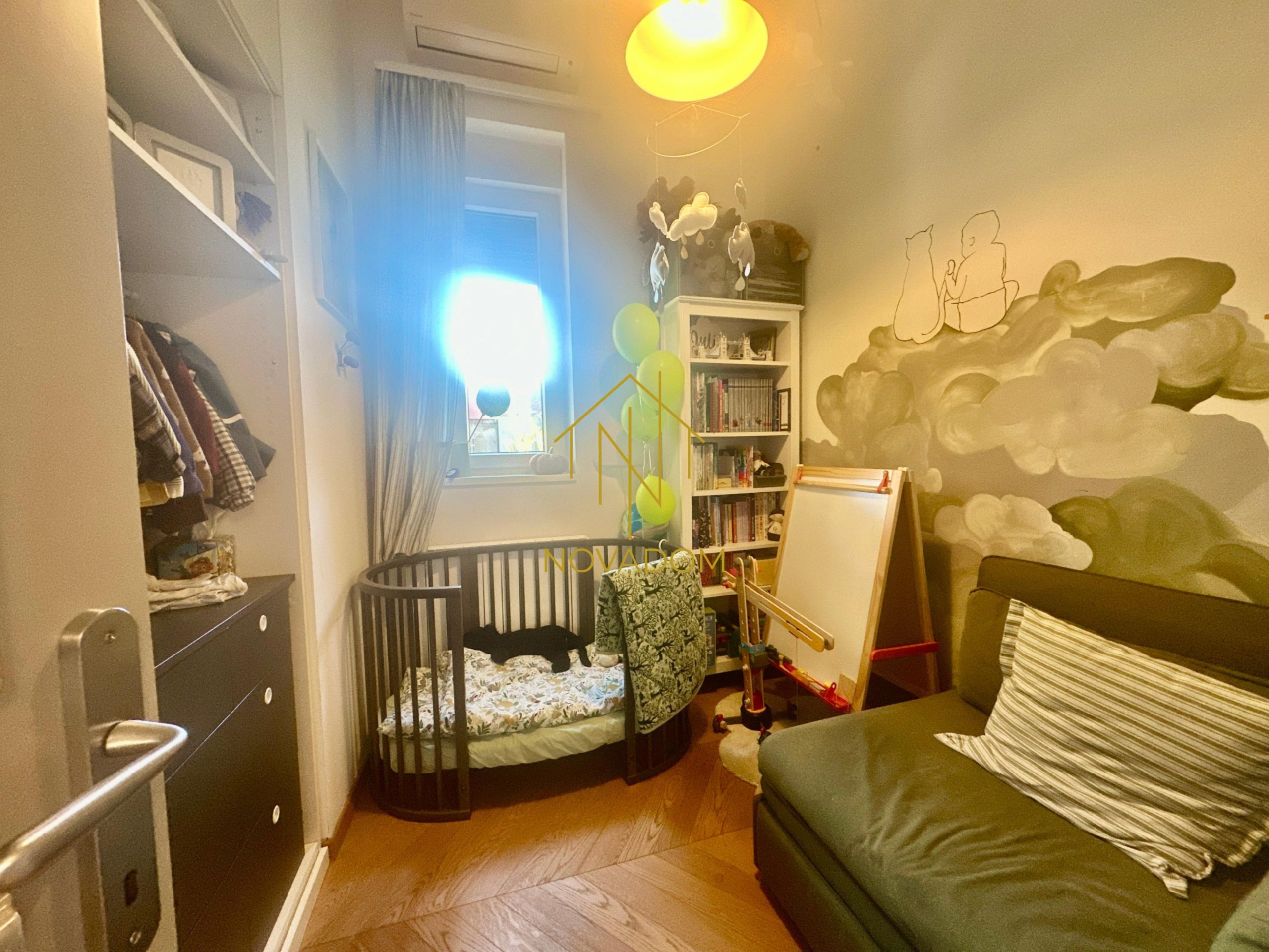 Nekretnina se sastoji od: ulaznog prostora, open space dnevnog boravka s prekrasnim pogledom na park i zelenilo, kuhinje i blagovaone, manje galerije, veće i manje spavaće sobe, ostave, vešeraja te kupaone s wc-om (podno grijanje).